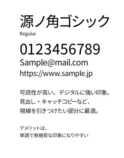 一方のゴシック体は線が均一で、画面でも紙でも太さによる安定感があるのが特徴です。