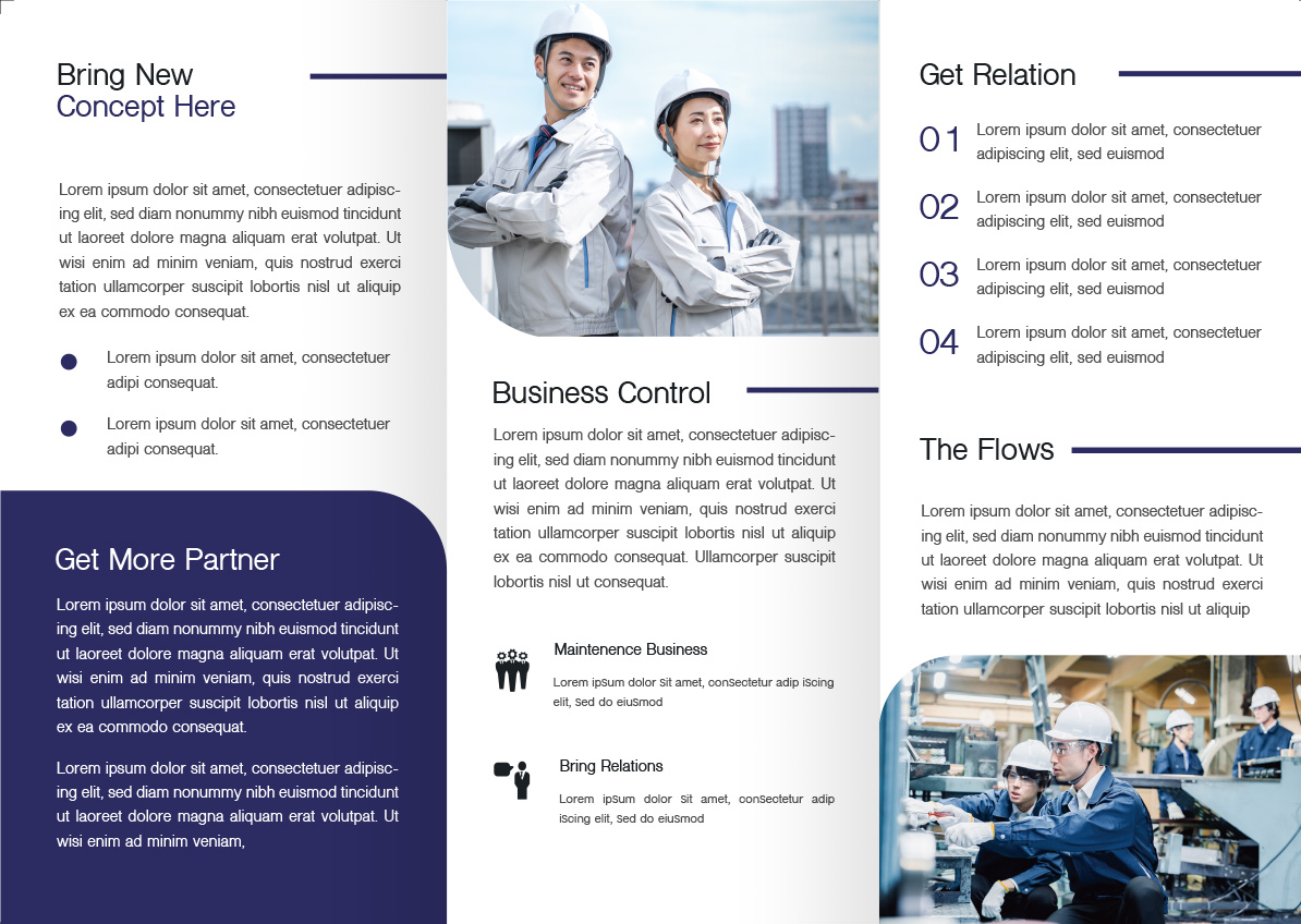 カラーや写真はサンプルです。業種などの制限なく制作できます。