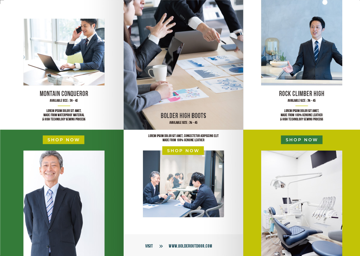 カラーや写真はサンプルです。業種などの制限なく制作できます。