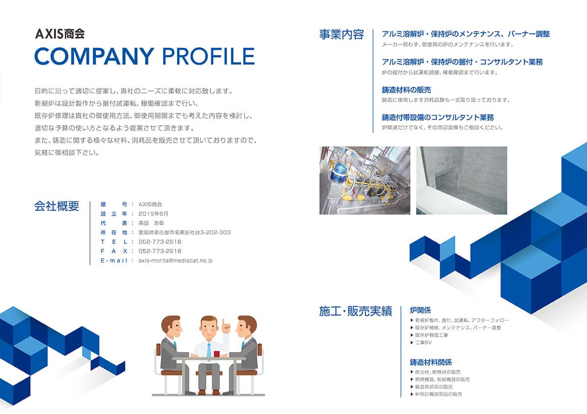WORK パンフレット制作事例 HOME>制作事例[A4仕上がり二つ折]>AXIS商会 AXIS商会 様 制作事例[A4仕上がり二つ折] 使用テンプレート B-028 所在地 愛知県 業種 鉱業 イメージ 表面 中面 B-028 テンプレートを見る NEXT