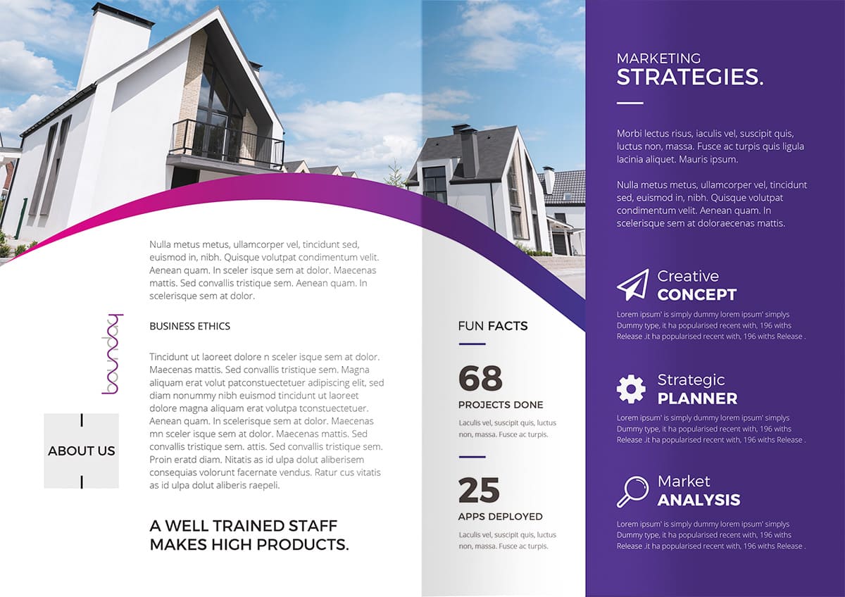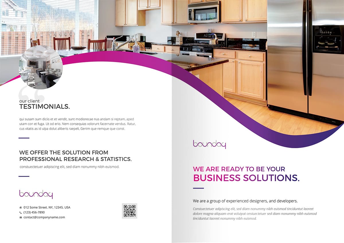 画像を両開きで見せることで、インパクトのあるパンフレットになります。