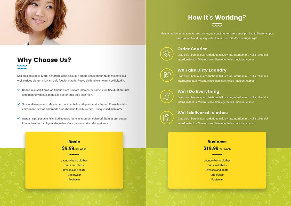 カラーや写真はサンプルです。業種などの制限なく制作できます。