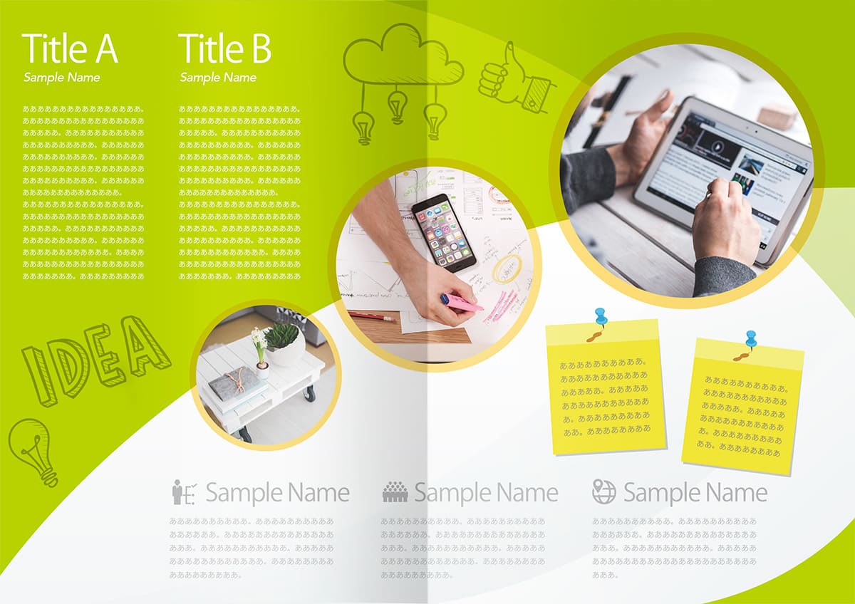 カラーや写真はサンプルです。業種などの制限なく制作できます。