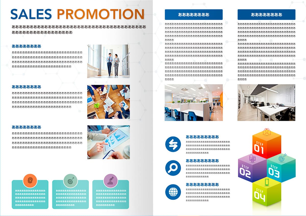 カラーや写真はサンプルです。業種などの制限なく制作できます。