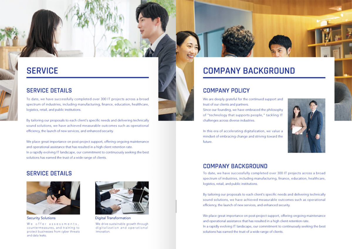 カラーや写真はサンプルです。業種などの制限なく制作できます。