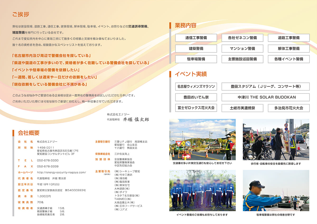 WORK パンフレット制作事例 HOME>制作事例[A4仕上がり二つ折]>株式会社エナジー 株式会社エナジー 様 制作事例[A4仕上がり二つ折] 使用テンプレート B-021 所在地 愛知県 業種 サービス業 イメージ 表面 中面 B-021 テンプレートを見る PREV NEXT