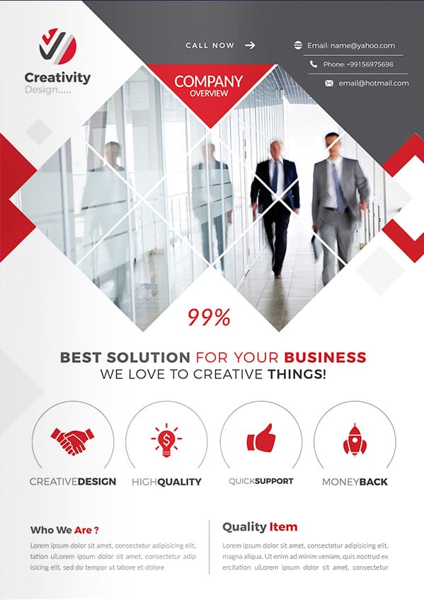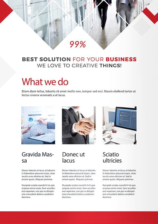 ビジネスシーンによくマッチするデザインのフライヤーです。