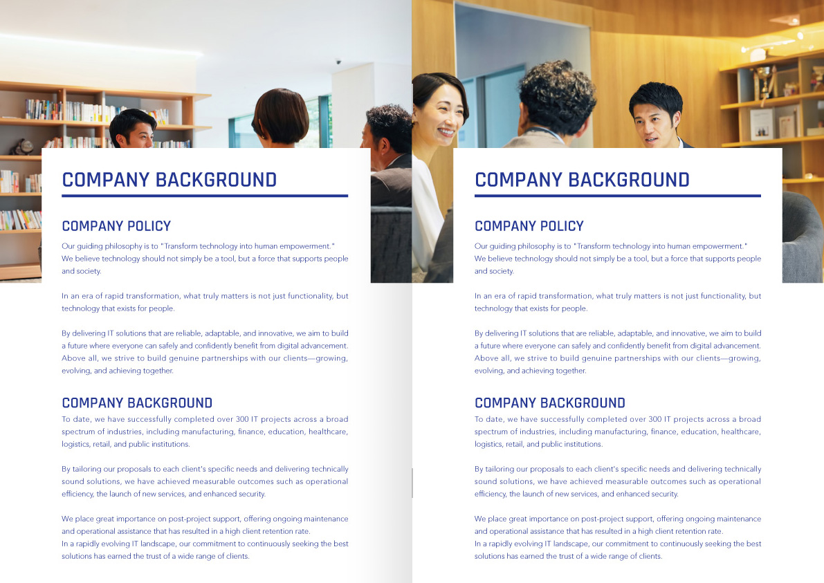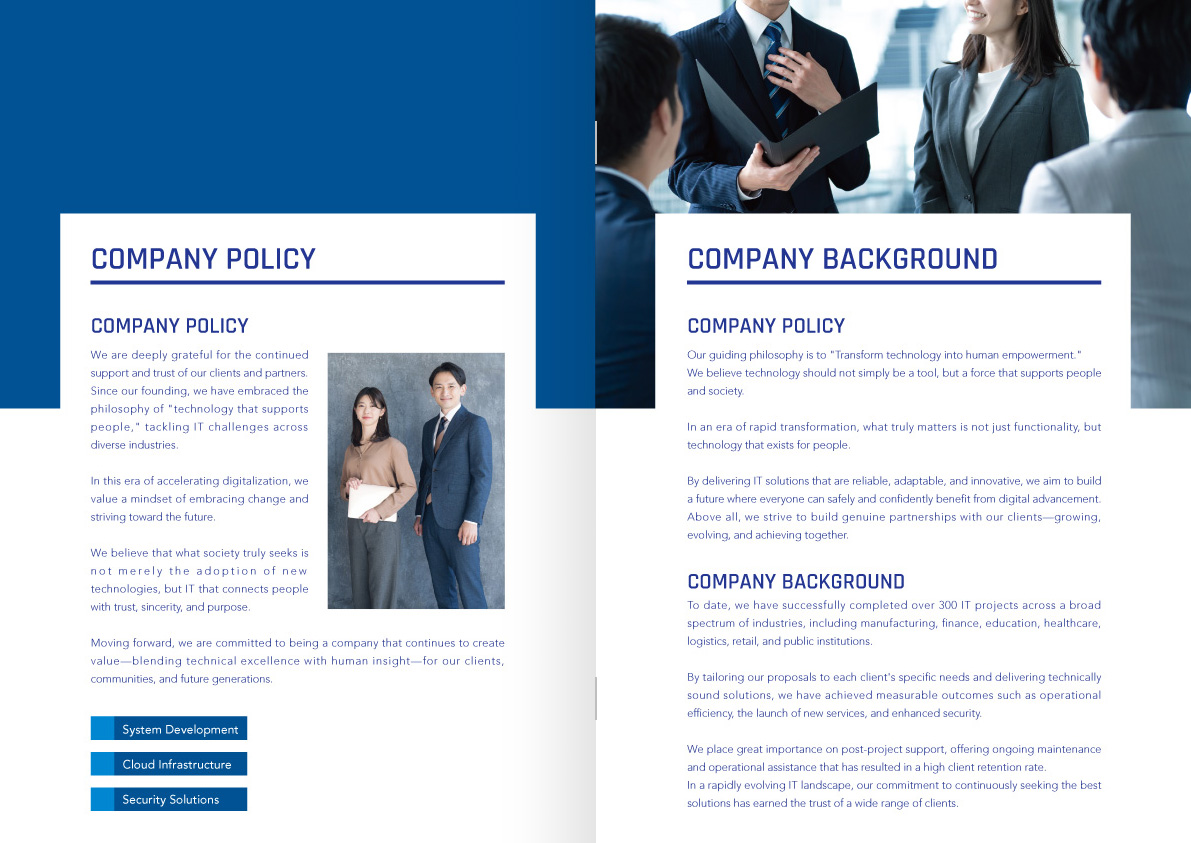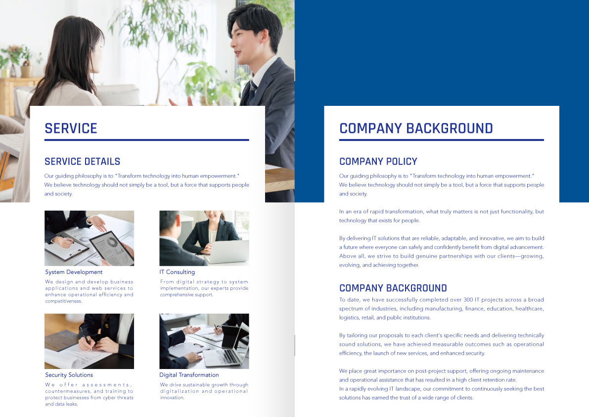 カラーや写真はサンプルです。業種などの制限なく制作できます。