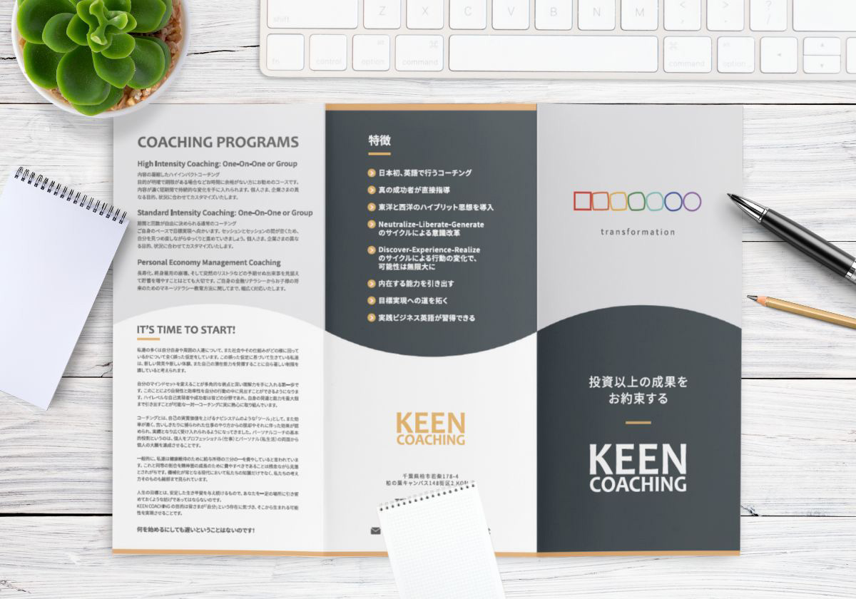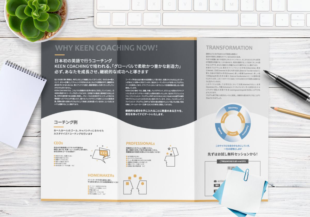 WORK パンフレット制作事例 HOME>制作事例[短冊仕上がり折]>KEEN COACHING KEEN COACHING 様 制作事例[短冊仕上がり折] 使用テンプレート A-001 所在地 千葉県 業種 サービス業 イメージ 表面 中面 A-001 テンプレートを見る PREV NEXT