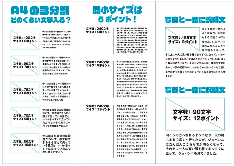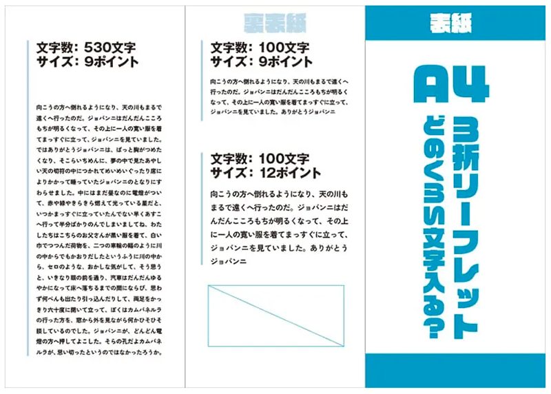 文字を詰め込みすぎると、読みにくくなるだけでなく、内容が伝わらないリスクがあります。商業用の印刷物では、適切な文字量と配置が重要です。