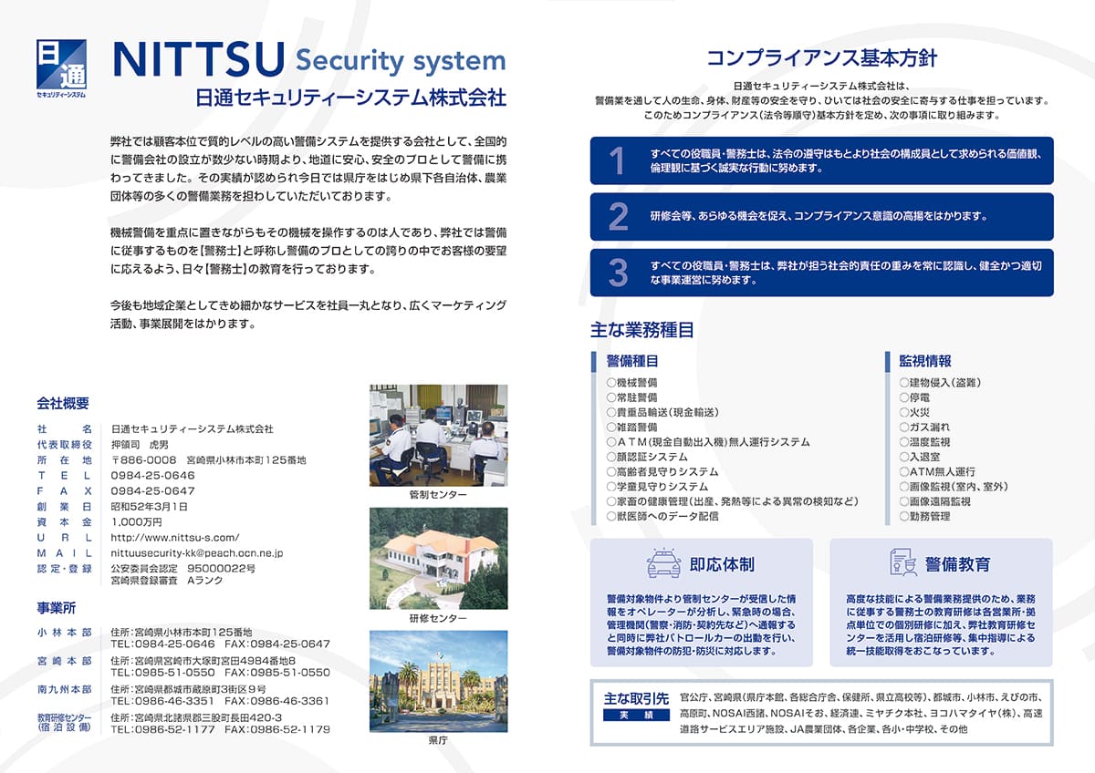 WORK パンフレット制作事例 HOME>制作事例[A4仕上がり二つ折]>日通セキュリティーシステム 日通セキュリティーシステム 様 制作事例[A4仕上がり二つ折] 使用テンプレート B-022 所在地 宮城県 業種 サービス業 イメージ 表面 中面 B-022 テンプレートを見る PREV NEXT